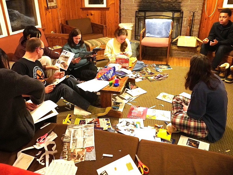 Over the bitterly cold weekend of January 30-February 1, our youth group gathered at Camp Hebron for its annual retreat. We chatted, we collaged, we board-gamed, we ate, we slept, we played in the snow, we prayed for our departing seniors, and, in general, we had a hoot. Photos by Randy, Nick, Caitlyn, and Raphael.
